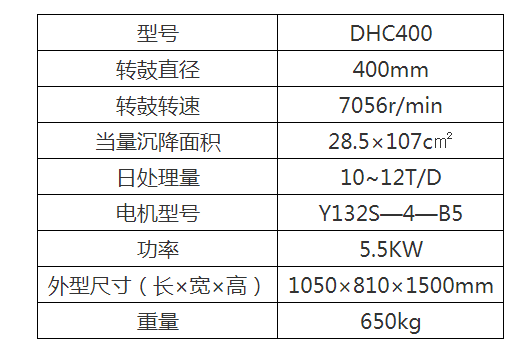 DHC400型設備主要參數為: